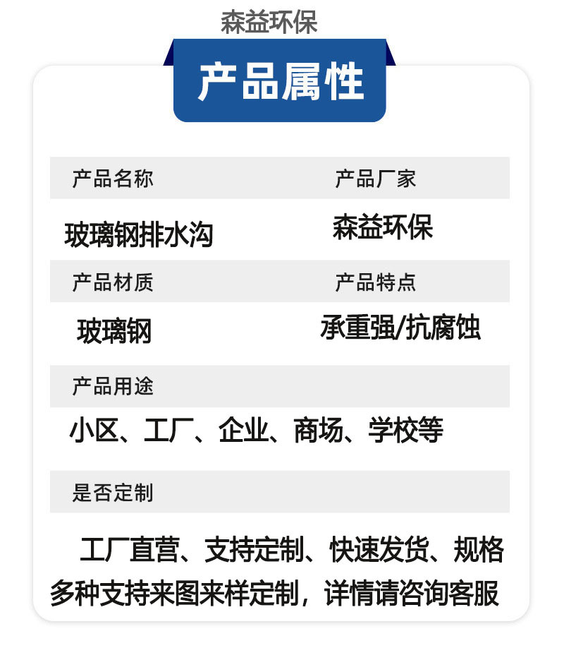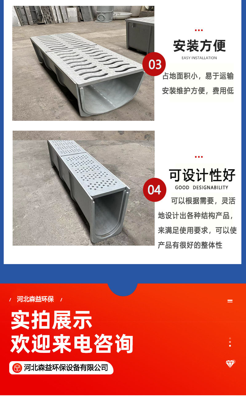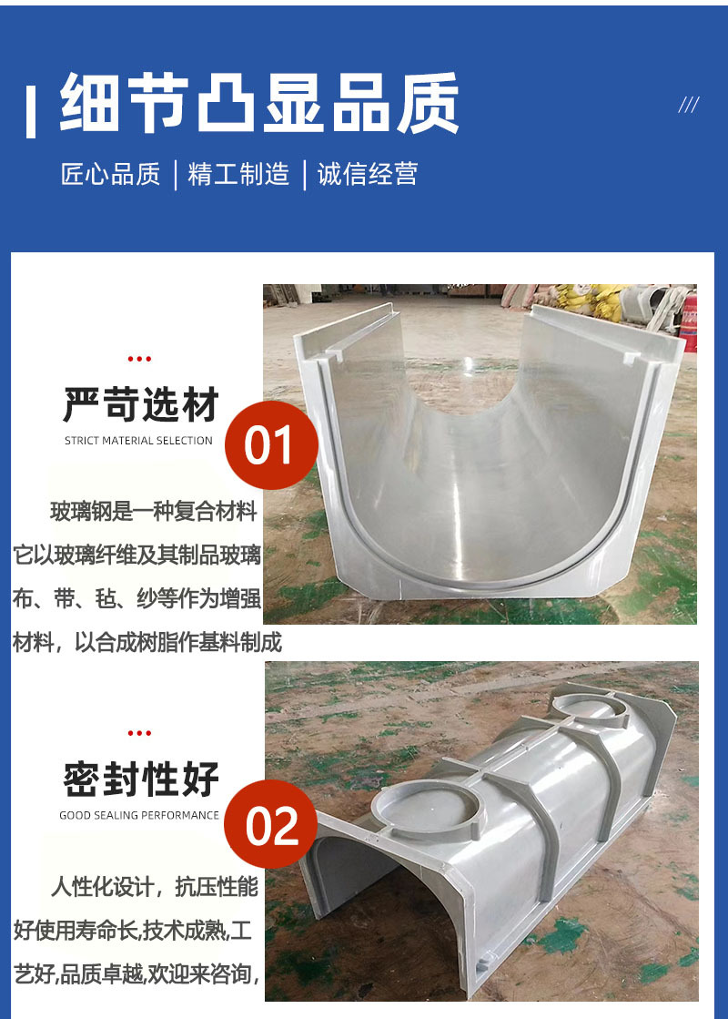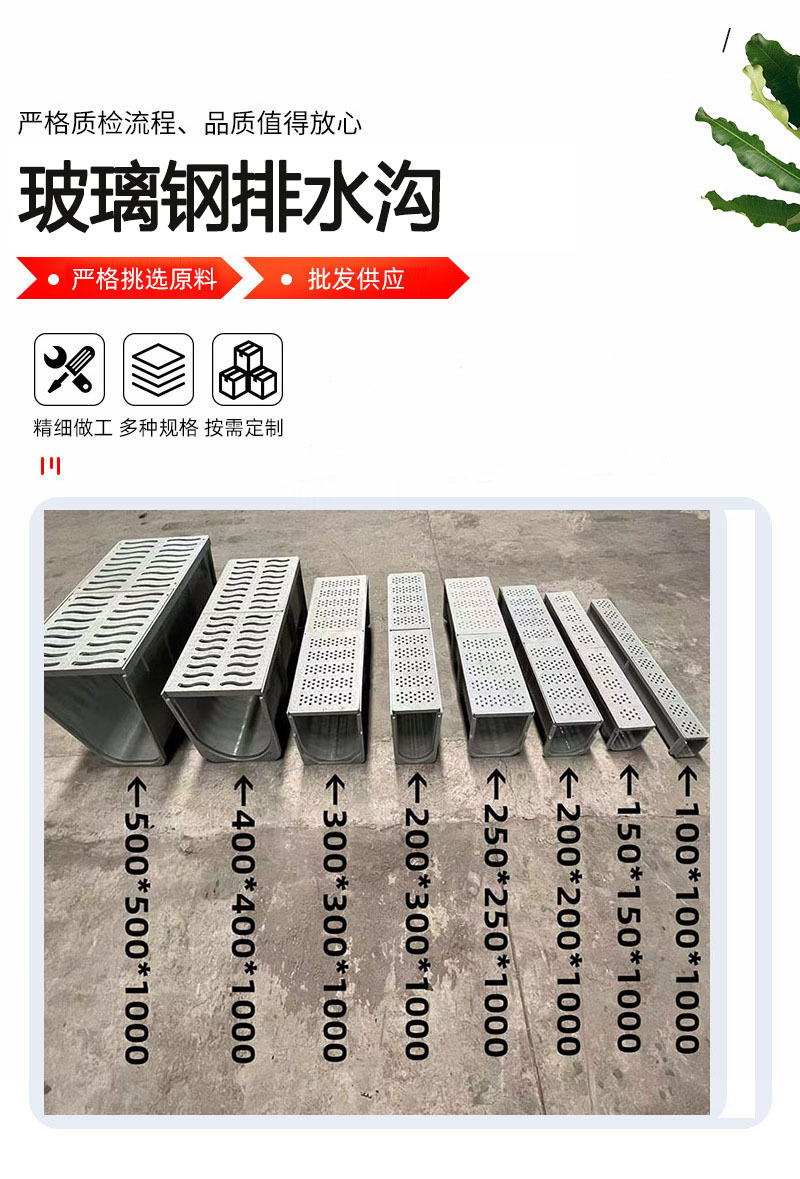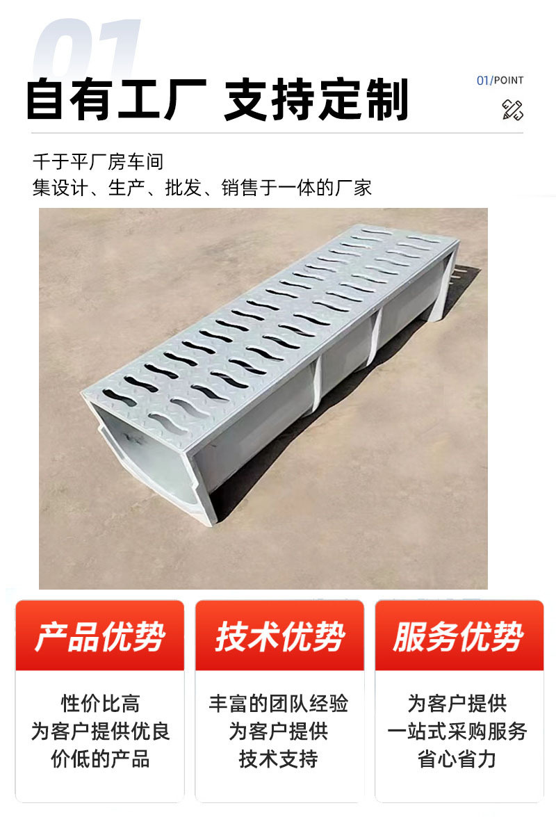Rãnh thoát nước nhựa gia cố sợi thủy tinh SMC Rãnh hình chữ U rãnh thoát nước nhựa thành phẩm nhà máy công viên nhà bếp trường học được áp dụng