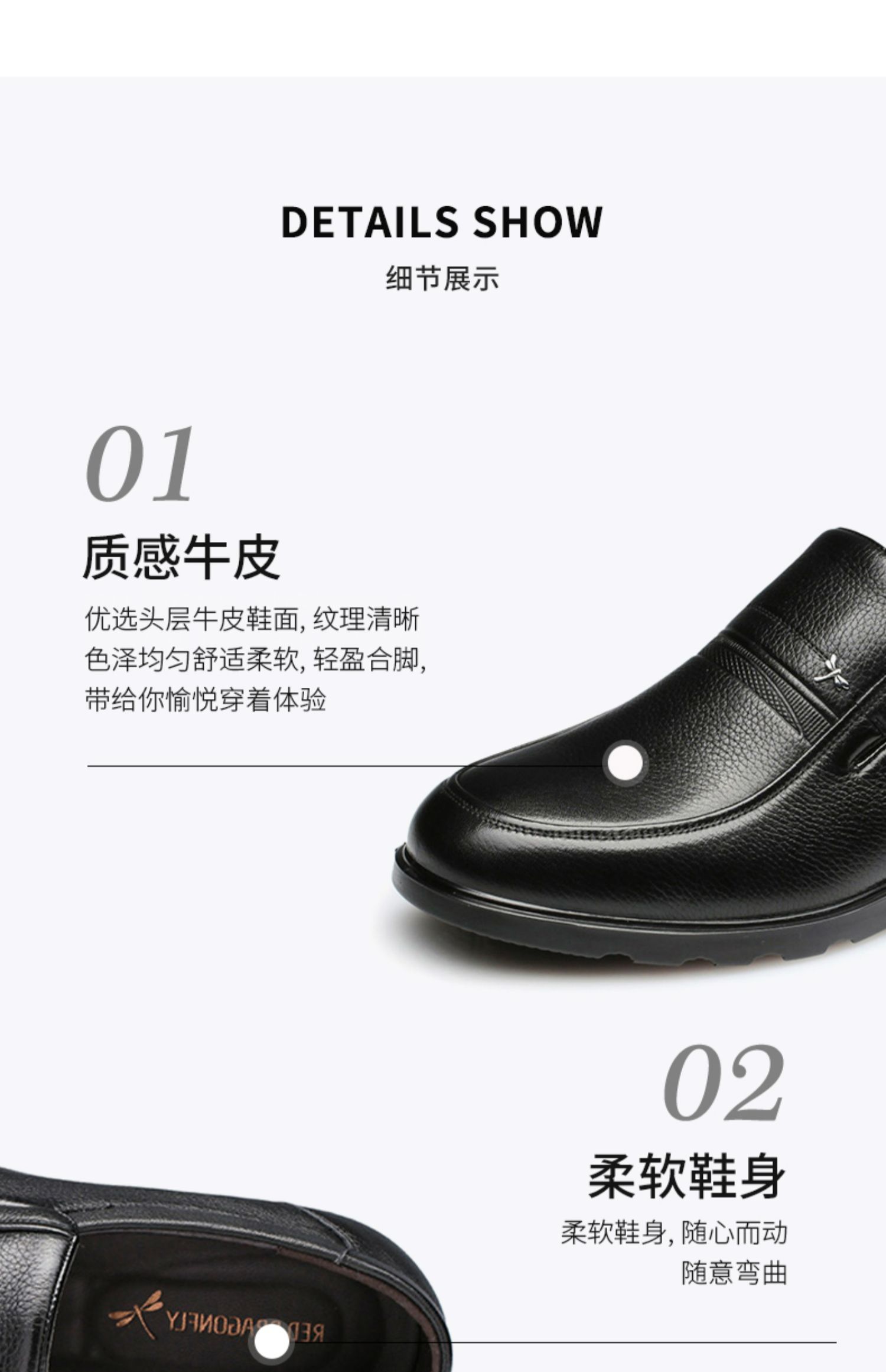 Giày da Red Dragonfly chính hãng cửa hàng kinh doanh Giày da nam bề mặt mềm mại trung niên và Giày da kích thước lớn
