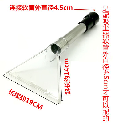 产品塑料接头的部分适合吸尘器软管外直径4.5厘米,请买家注意一下,不是你们的接头4.5CM,是软管外直径4.5厘米 塑料接头直径为4厘米可配。