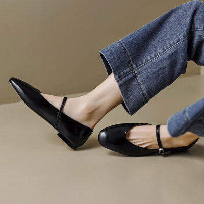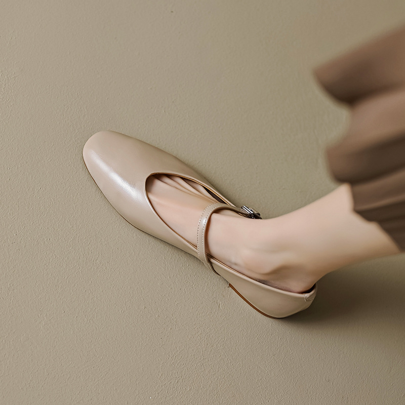 Retro Da Mềm Bạc Mary Jane Nhỏ Giày Da Nữ Phẳng Da Cừu Giày Đơn Nude Đen Kích Thước Lớn 4043