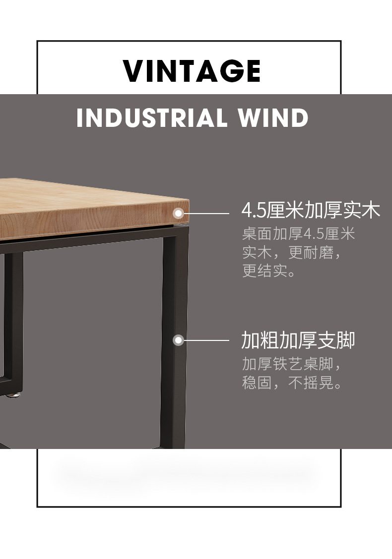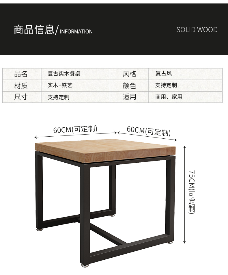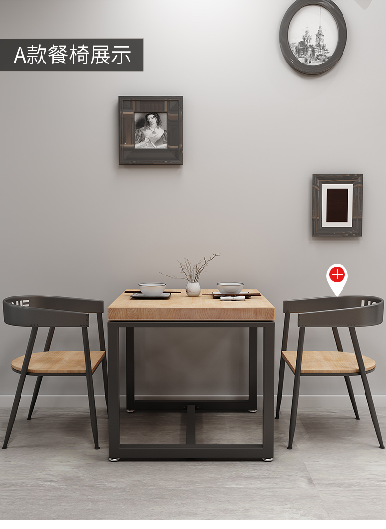 Retro gỗ chắc chắn căng tin bàn ghế ăn quán rượu nhà hàng cafe sắt rèn bàn vuông nhỏ thương mại bàn ăn vuông