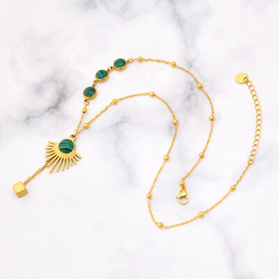 Retro Hình Quạt Tua Rua Vuông Xương Đòn Dây Chuyền Quà Tặng Cho Mẹ Màu Xanh Đậm Họa Tiết Malachite Titan Vòng Cổ Bán Buôn