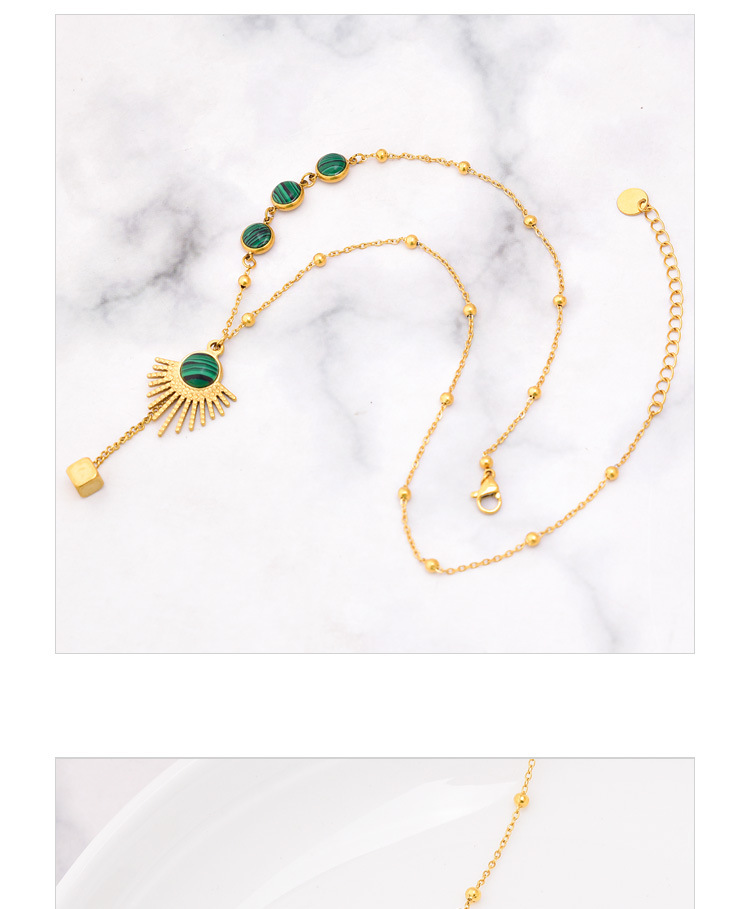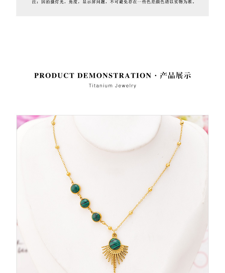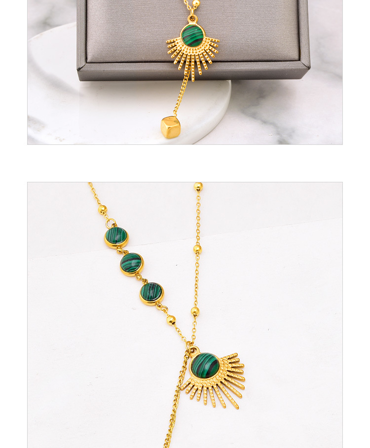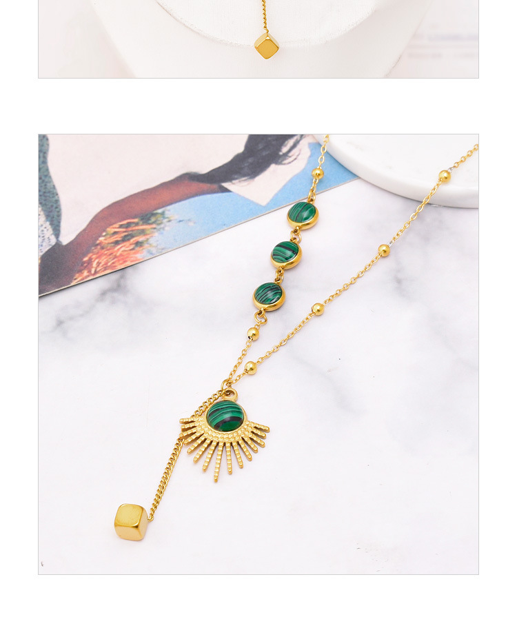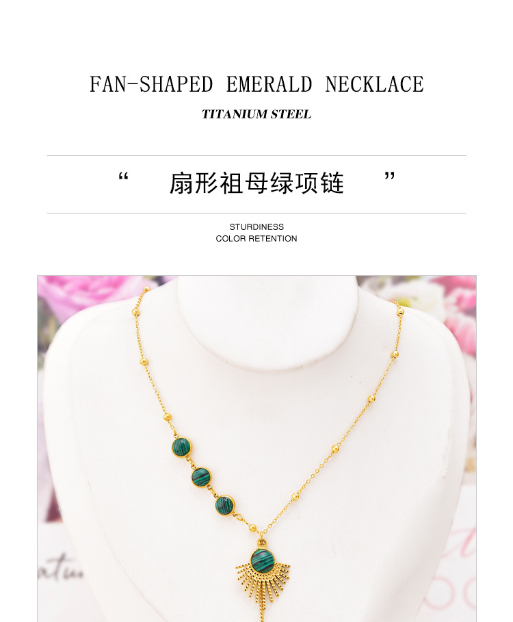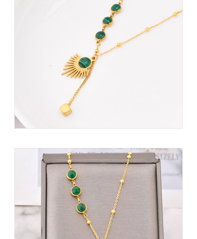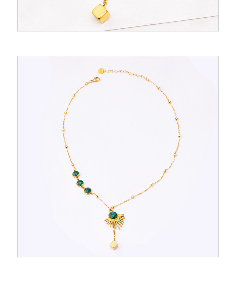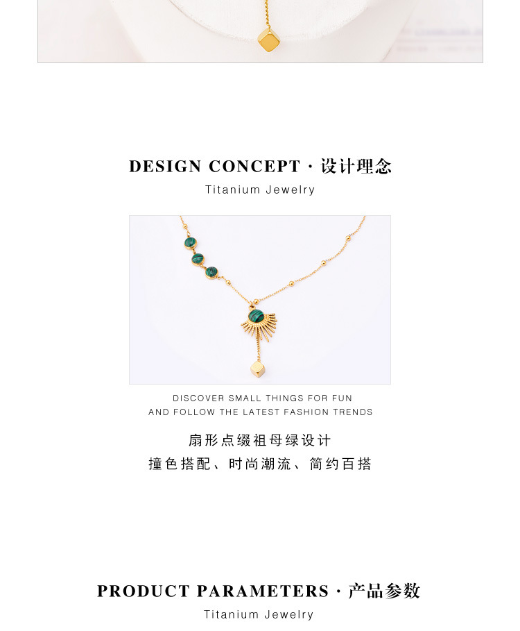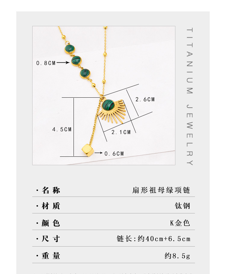 Retro Hình Quạt Tua Rua Vuông Xương Đòn Dây Chuyền Quà Tặng Cho Mẹ Màu Xanh Đậm Họa Tiết Malachite Titan Vòng Cổ Bán Buôn