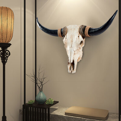 Retro mô phỏng đầu bò treo tường Bắc Âu phương tây nhà hàng thanh khách sạn nền trang trí tường sáng tạo mặt dây chuyền đầu động vật