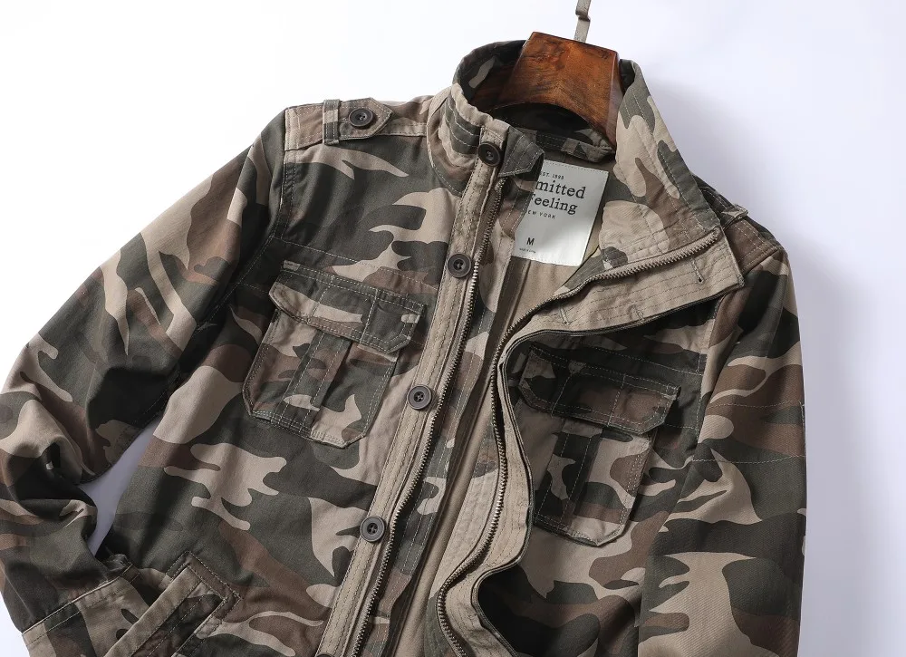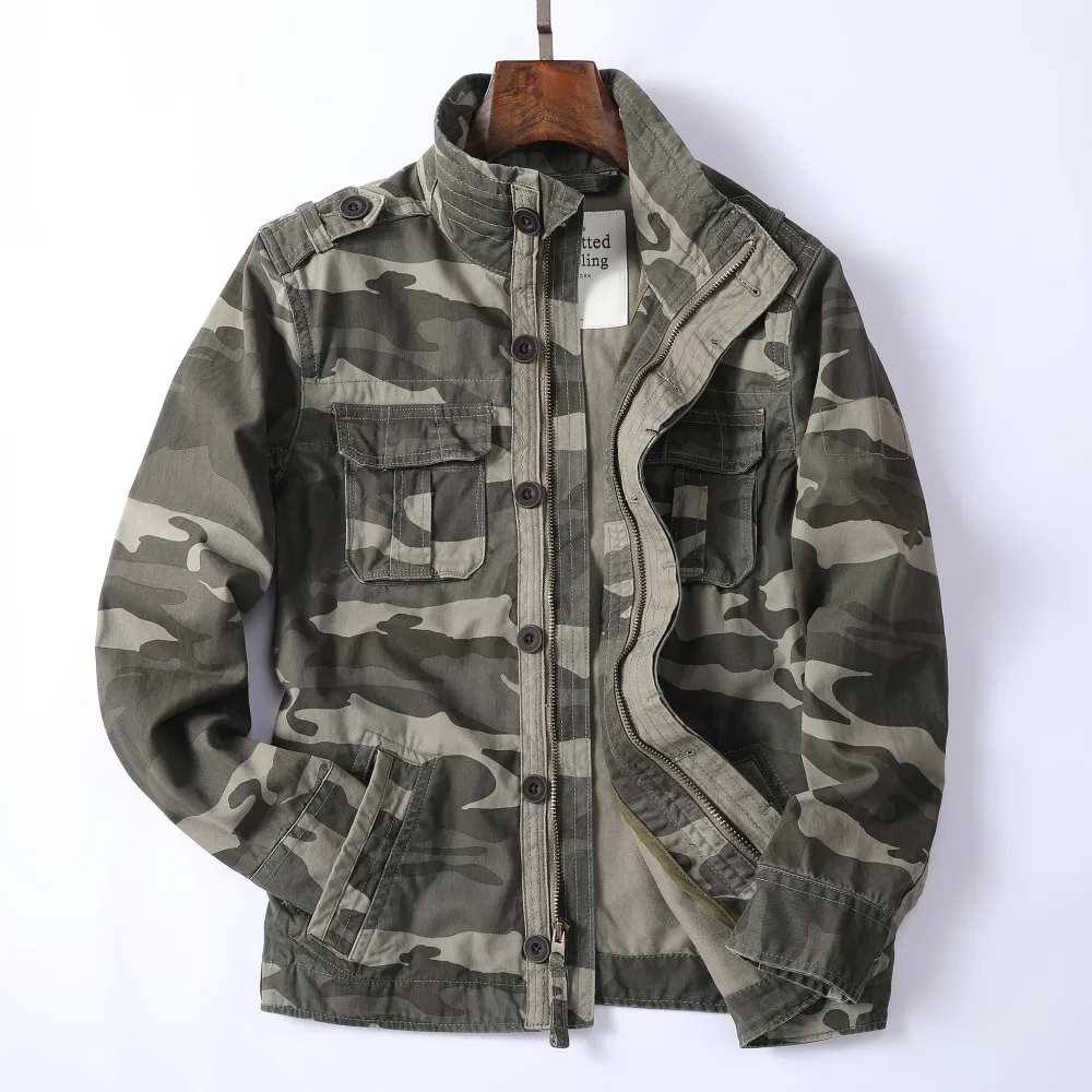 Retro Men's Autumn Jacket Tactical Camouflage Military Style Coat Stand Collar Casual Spring Jacket