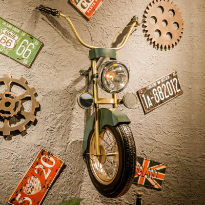 Retro phong cách công nghiệp ba chiều xe máy trang trí tường quán bar treo tường mặt dây chuyền sáng tạo nhà hàng sắt rèn treo tường