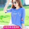 Retro văn học cotton tinh khiết màu sắc mỏng phần áo thun năm điểm tay áo phụ nữ 2022 áo mùa hè mới mỏng và cân nhắc
