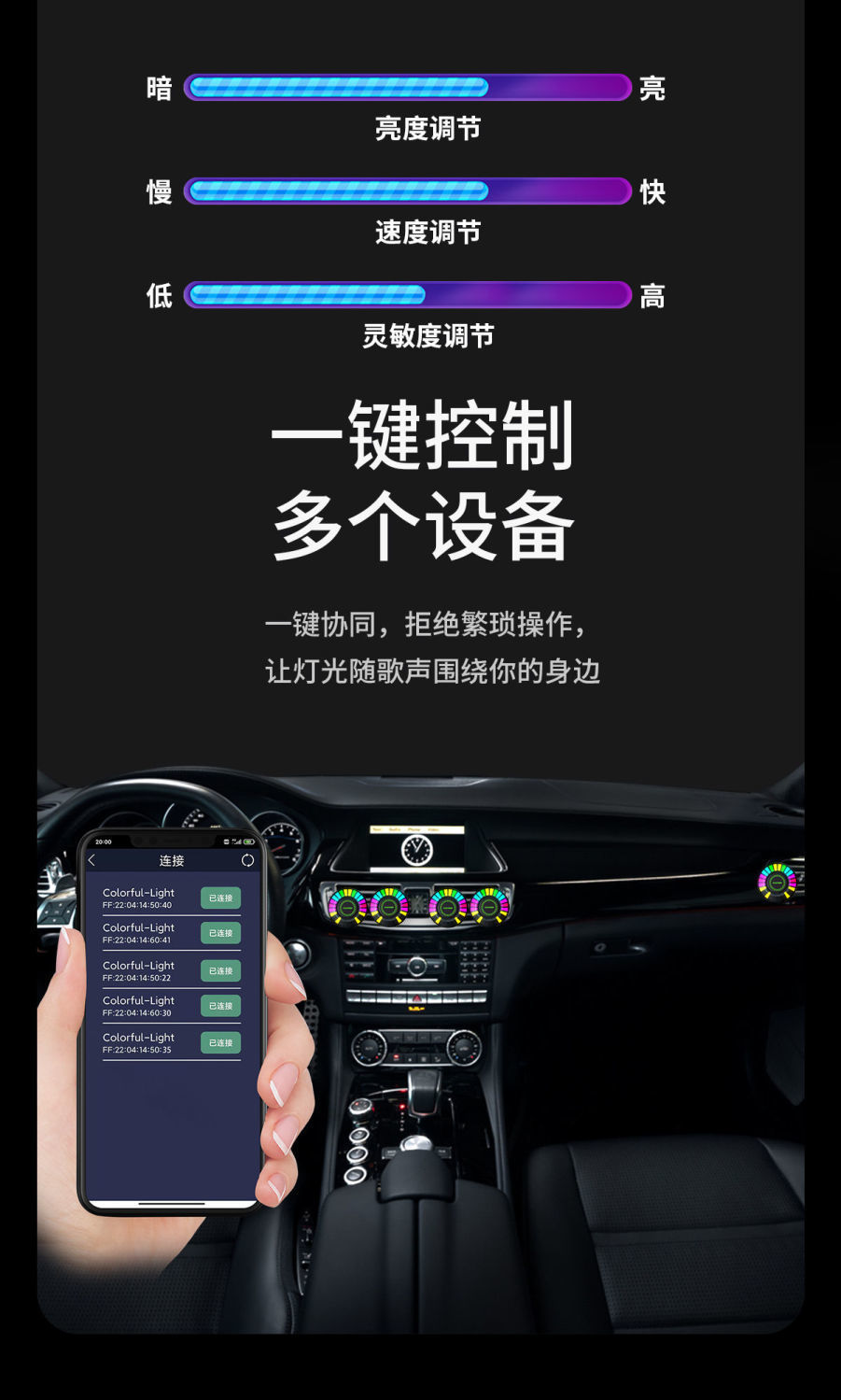 RGB xe hương liệu kích hoạt bằng giọng nói xe bán điều hòa không khí ổ cắm trang trí bluetooth có thể điều chỉnh ánh sáng nước hoa lâu dài rõ ràng