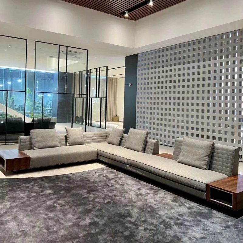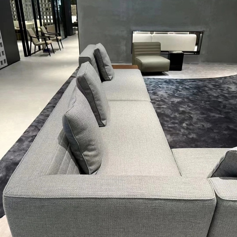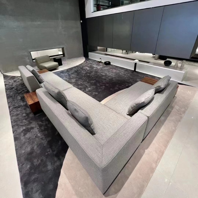 Roger’s re-khắc lại phong cách Ý sàn phẳng lớn góc hàng thẳng gỗ nguyên khối thiết kế Đẹp sang trọng phòng khách cỡ lớn ghế sofa vải lanh và vải cotton