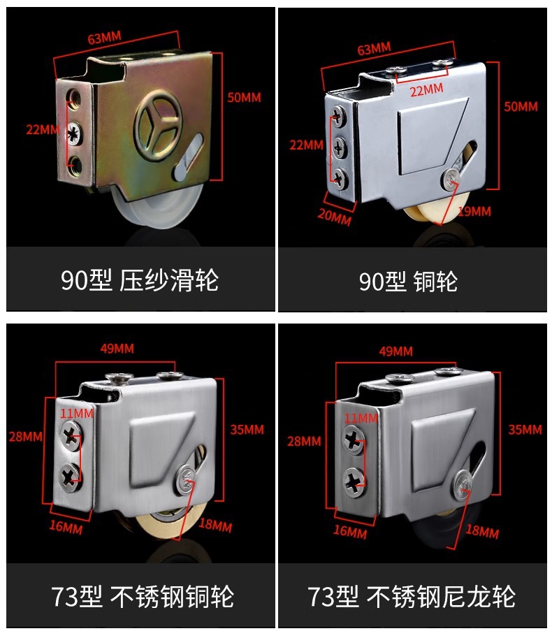 Ròng rọc cửa sổ hợp kim nhôm kiểu cũ 90 loại 82 cửa trượt 76 kính kéo đẩy cửa thép nhựa phụ kiện con lăn rãnh