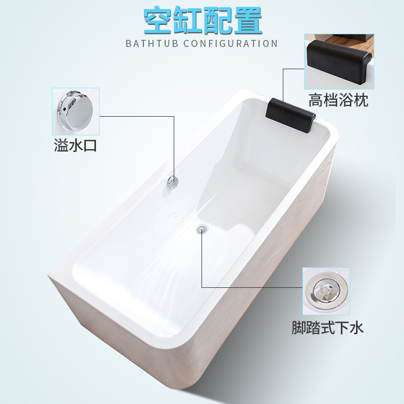 Rongchen Thiết Bị Vệ Sinh Lướt Độc Lập Massage Tích Hợp Liền Mạch Bồn tắm Người Lớn Nhà Khách Sạn Bồn tắm Acrylic