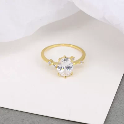 【Item Type】: Geometry Egg Shape Crystal Gold Rings