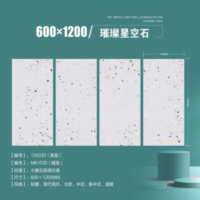 Rực rỡ bầu trời đầy sao đá gạch terrazzo 600×1200 màu macaron hạt nhỏ gạch giả cổ nhẹ nhàng chống trơn trượt