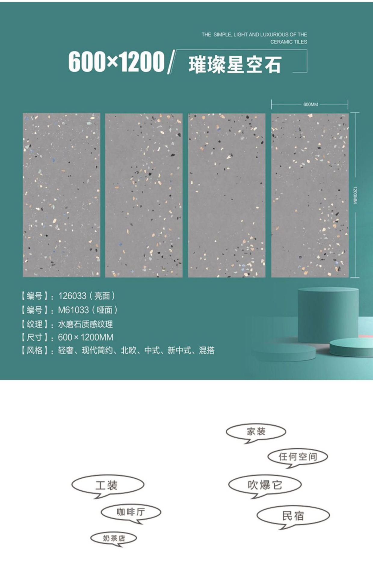 Rực rỡ bầu trời đầy sao đá gạch terrazzo 600×1200 màu macaron hạt nhỏ gạch giả cổ nhẹ nhàng chống trơn trượt