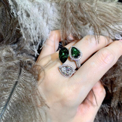 Rực rỡ cảm giác cao cấp ins ngọc lục bảo malachite màu xanh lá cây nhẫn kim cương nữ mở có thể điều chỉnh Đẹp sang trọng phong cách lạnh lùng