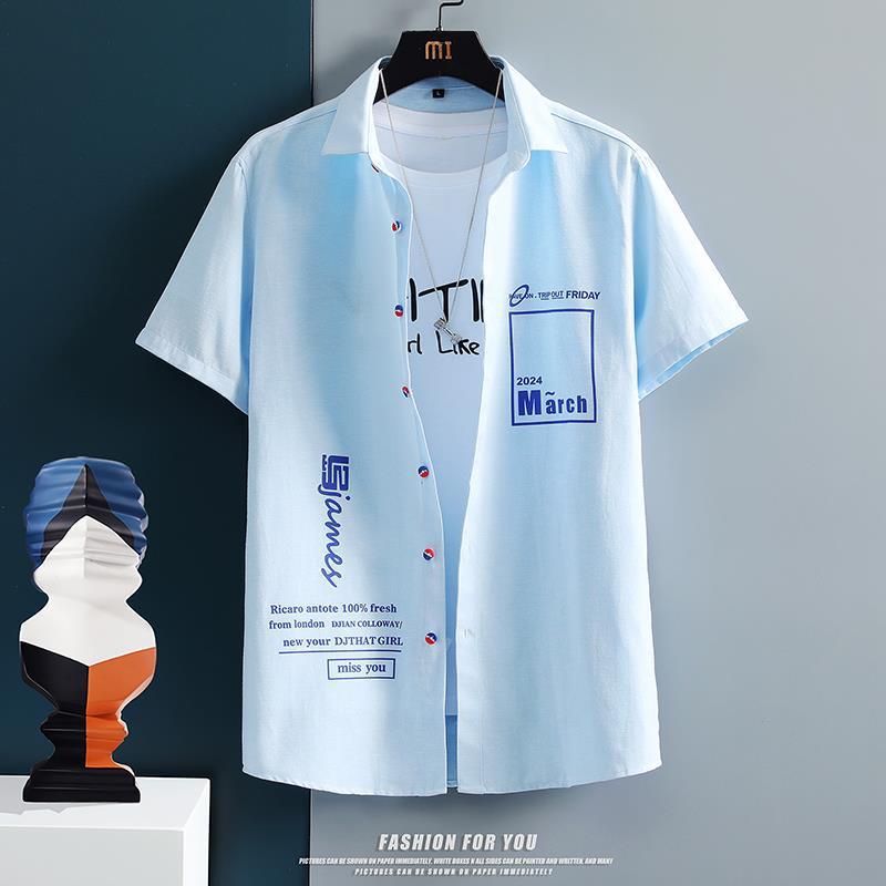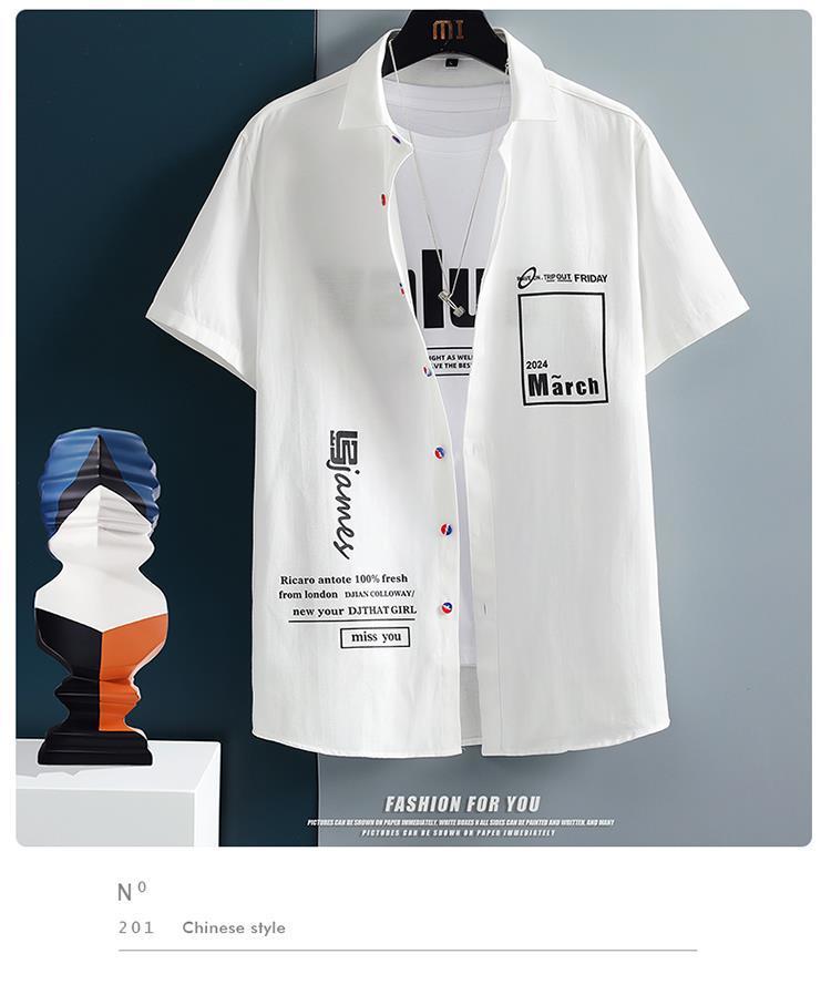 Ruffian đẹp trai áo sơ mi nam ngắn tay mùa hè phong cách hàn quốc quần áo thời trang phù hợp với tất cả các trận đấu nửa tay áo sơ mi nam màu trắng dáng rộng giản dị