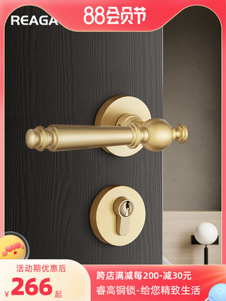 Rui Gao khóa cửa bằng đồng nguyên chất Pháp retro câm từ vàng khóa cửa phòng ngủ khóa ánh sáng của Mỹ tay nắm cửa đôi sang trọng