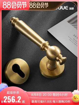 Ruijue đồng nguyên chất Mỹ retro câm khóa cửa gỗ trong nhà vàng Pháp khóa cửa bằng đồng thau chải tay nắm cửa phòng ngủ