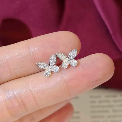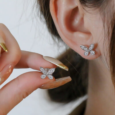 Rumble vàng thiết bị mini phantom bướm bông tai ánh sáng thời trang sang trọng khí chất Internet người nổi tiếng S925 bạc đầy đủ kim cương bông tai tinh tế