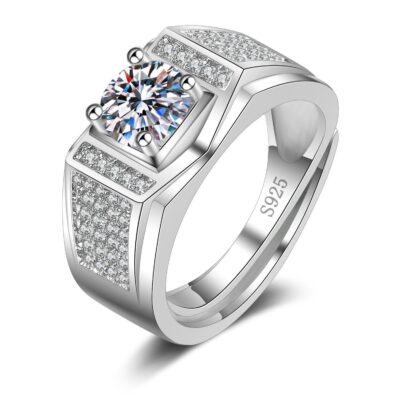 Runxin Men’s Business Ring Nhà sản xuất nhẫn kim cương Bán buôn Live Source Men’s Flash Diamond One Carat Zircon Open Ring