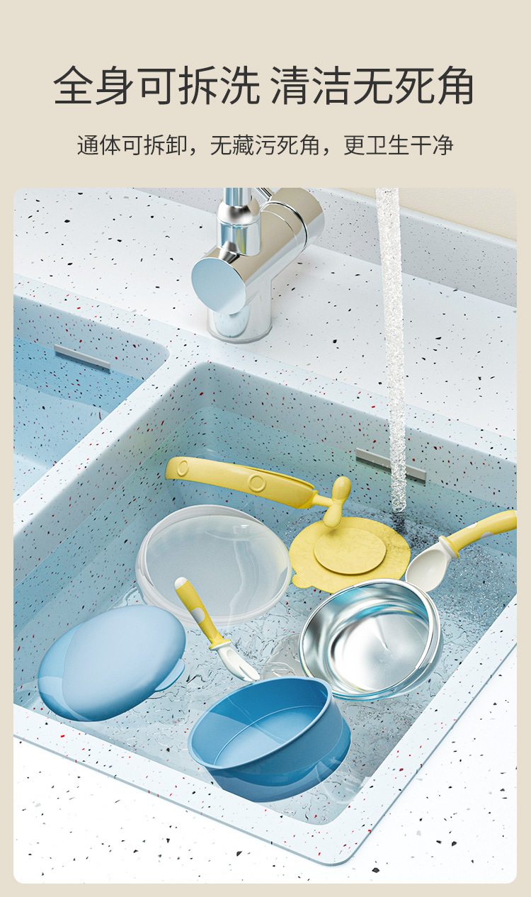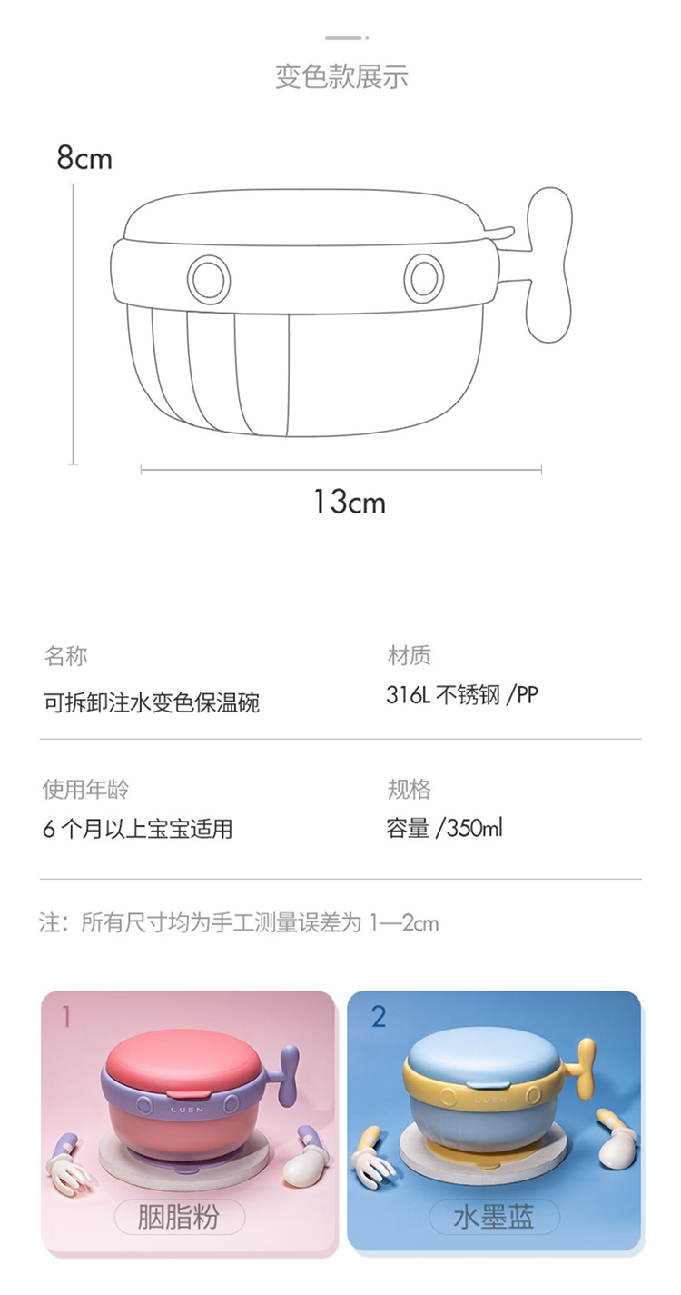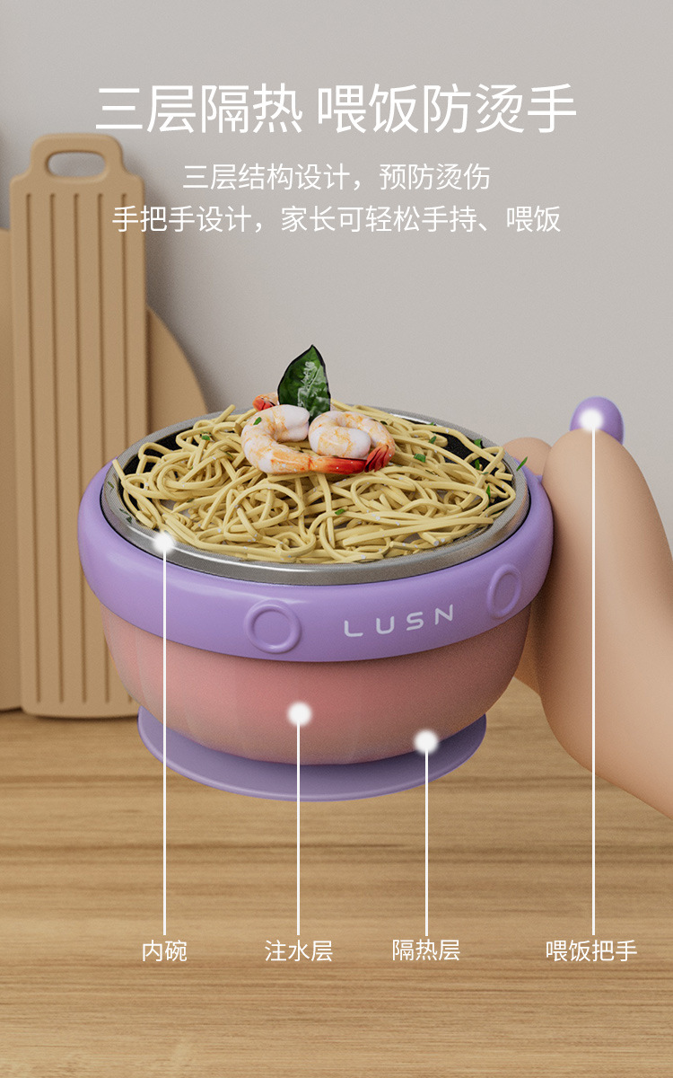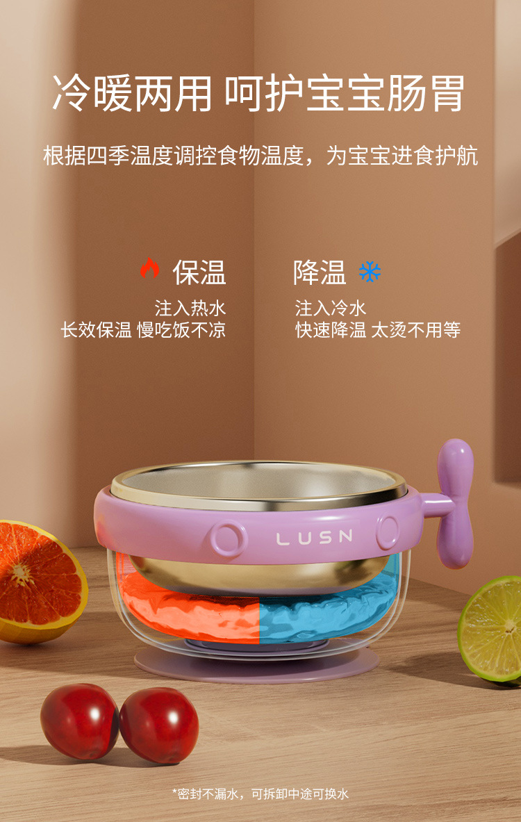 Rushan Chính Hãng Thép Không Gỉ 316L Trẻ Em Phun Nước Bát Cách Nhiệt Cho Bé Sơ Sinh Thực Phẩm Bổ Sung Bát Cho Ăn Bộ Đồ Ăn