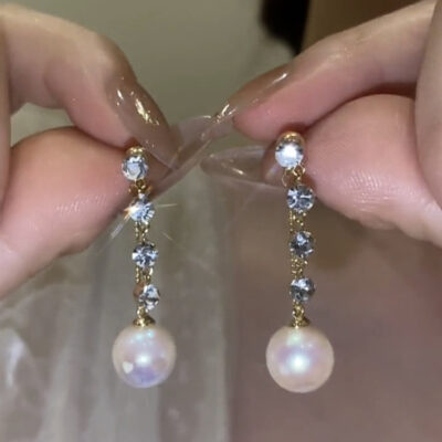 S925 Bạc Kim Douyin Cùng Đá Nàng Tiên Cá Ji Ngọc Trai Bông Tai Dài Bông Tai Nữ Nhẹ Sang Trọng Tính Khí Đa Năng Bông Tai
