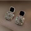 S925 Bạc Vuông Thời Trang Âu Mỹ Tính Khí Bông Tai Tua Rua Dài Siêu Kim Cương Giả Bông Tai Kim Bạc Cho Nữ