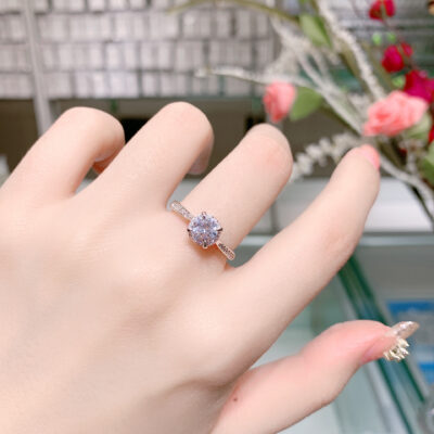 S925 Nhẫn Bạc Nữ Thời Trang Mở Vòng Nhẫn Đứng Kim Cương Có Thể Điều Chỉnh Vòng Lưới Đỏ Nóng Phong Cách Micro-Bộ kim Cương Một Mảnh