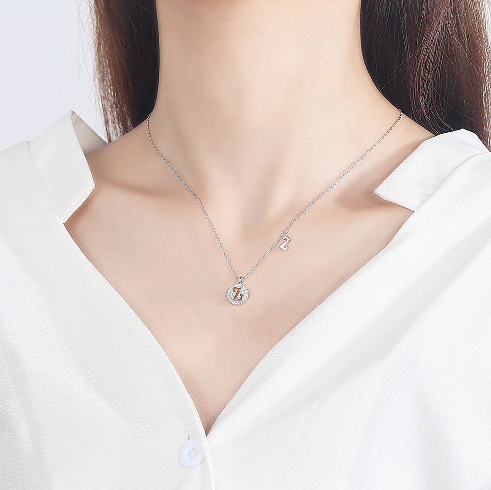 S925 vòng cổ bạc nữ 26 chữ cái tiếng anh mặt dây chuyền hợp thời trang lưới đỏ đơn giản tính khí thích hợp thiết kế xương đòn dây chuyền