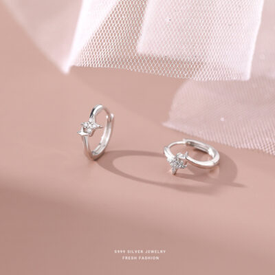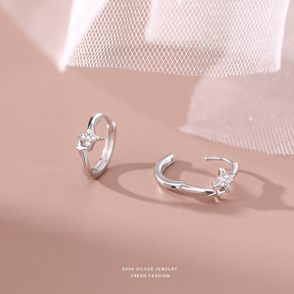 s999 bạc nguyên chất zircon tai ngôi sao khóa tai nữ siêu sao cá tính đơn giản siêu khí chất bông tai cảm giác cao cấp bán buôn
