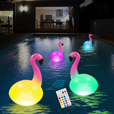 Sạc năng lượng mặt trời dạ quang bóng LED hồng hạc chống thấm nước nhiều màu sắc bể bơi nổi ánh sáng bãi cỏ ánh sáng phong cảnh