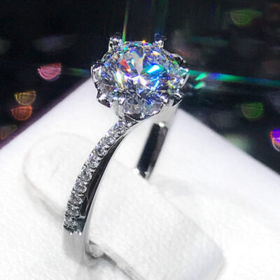 Sách Đỏ Nhỏ Giả Moissanite Tám Trái Tim và Tám Mũi Tên Nhẫn Nữ Một Carat Nhẫn Cưới Sáu Móng Đơn Giản Douyin Nguồn Trực Tiếp