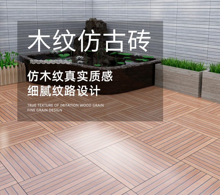 Sàn giả gỗ vân gỗ gạch sân lát nền ban công sân thượng chống trơn 600×600 sân vườn giả gỗ sàn gạch ngoài trời