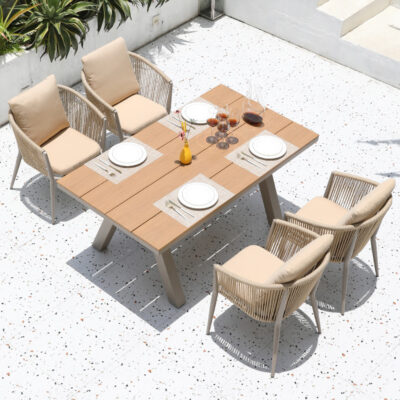 Sân ngoài trời bàn ghế biệt thự ngoài trời ban công lớn vườn mây giải trí ngoài trời gỗ nhựa chống nắng Bàn ghế Bắc Âu