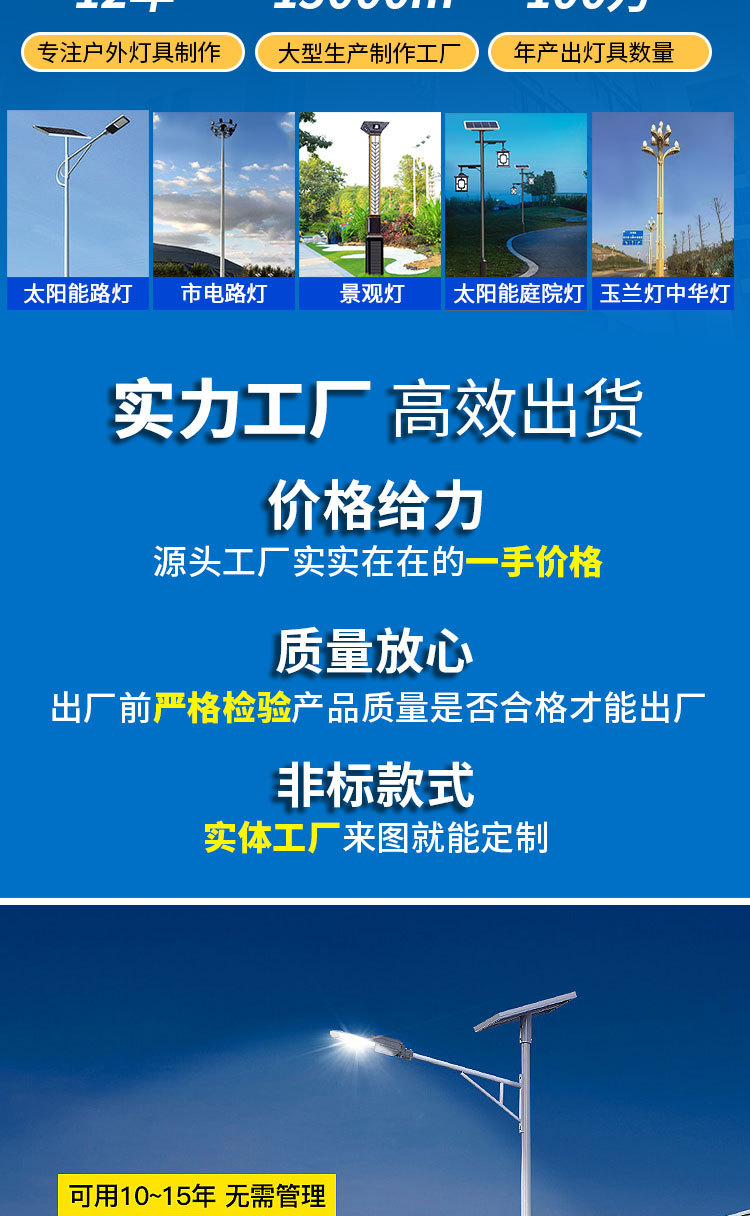 Sân ngoài trời LED cột cao đường đô thị sân nông thôn mới 220V công suất cao đôi cánh tay đèn đường năng lượng mặt trời. Quý khách có nhu cầu mua Đèn năng lượng mặt trời vui lòng liên hệ với chúng tôi để được tư vấn hỗ trợ. Dịch vụ mua hàng Trung Quốc sẽ hỗ trợ quý khách mua hàng từ nhà cung cấp và giao tới tận tay quý khách hàng..Nơi xuất xứ: Trung Sơn, Quảng Đông Số sản phẩm: YG-TYN25 Thương hiệu: Hạt đèn Youguang Quảng Đông Thương hiệu: Jingyuan Purui Model: YG-TYN25 Công suất định mức: 50w 60w 100w 200w Có bằng sáng chế: Không Chứng nhận: Không Nền tảng hạ nguồn chính: Khác có thể được ủy quyền Thương hiệu riêng: Có Cho dù đó là người nộp thuế thông thường: Có Loại công tắc: Cảm ứng Tuổi thọ: 60000 (h) Loại nguồn sáng: LED Cấp độ bảo vệ: IP65 Điện áp: 12 Kích thước: 6 mét 8 mét 10 mét 12 mét Cho dù đó là chuyên xuất khẩu xuyên biên giới Nguồn cung cấp: Có Model: Đèn đường năng lượng mặt trời hai tay Phân loại thông số kỹ thuật: Đèn đường năng lượng mặt trời hai tay 6 mét/Đèn đường năng lượng mặt trời hai tay 8 mét/năng lượng mặt trời hai tay 10 mét đèn đường/đèn đường năng lượng mặt trời hai tay 12 mét/đèn đường năng lượng mặt trời hai tay/đèn đường năng lượng mặt trời hai tay Lĩnh vực bán hàng chính: Kiểu dáng khác: Trung Quốc Thời gian chiếu sáng liên tục: 6-12 giờ Có nên nhập khẩu hay không: Không