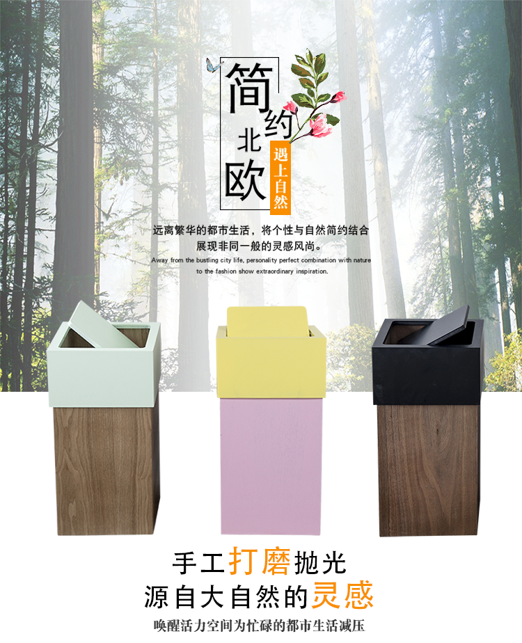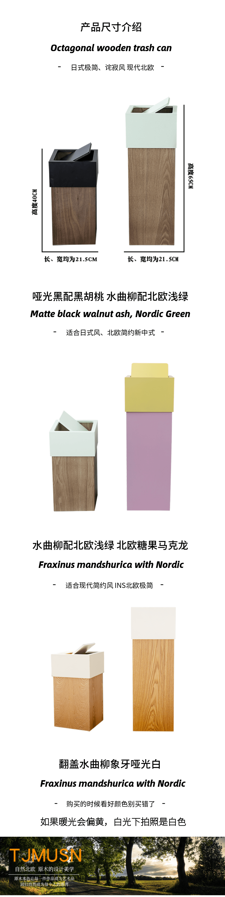 Sản phẩm mới trong phong cách Bắc Âu thùng rác bằng gỗ trong nhà lớn sáng tạo phòng khách phòng ngủ có nắp giỏ đựng giấy khách sạn B & B