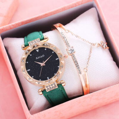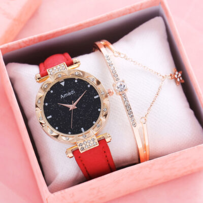Sản phẩm thoát nước Đông Nam Á lưới bầu trời đầy sao đỏ đồng hồ nữ Douyin cùng bộ quà tặng đồng hồ đeo tay
