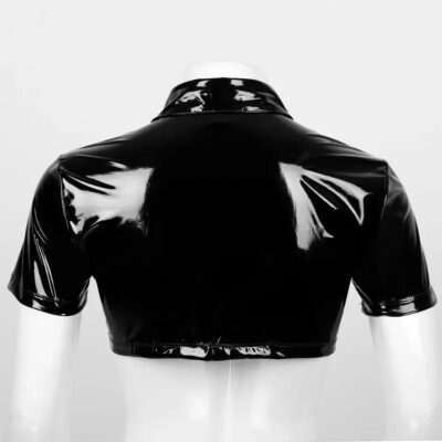 Sản phẩm xuyên biên giới Áo khoác da nam PVC sáng màu gợi cảm Áo sơ mi ngắn tay ngắn nửa chiều dài Áo da đúng kích thước