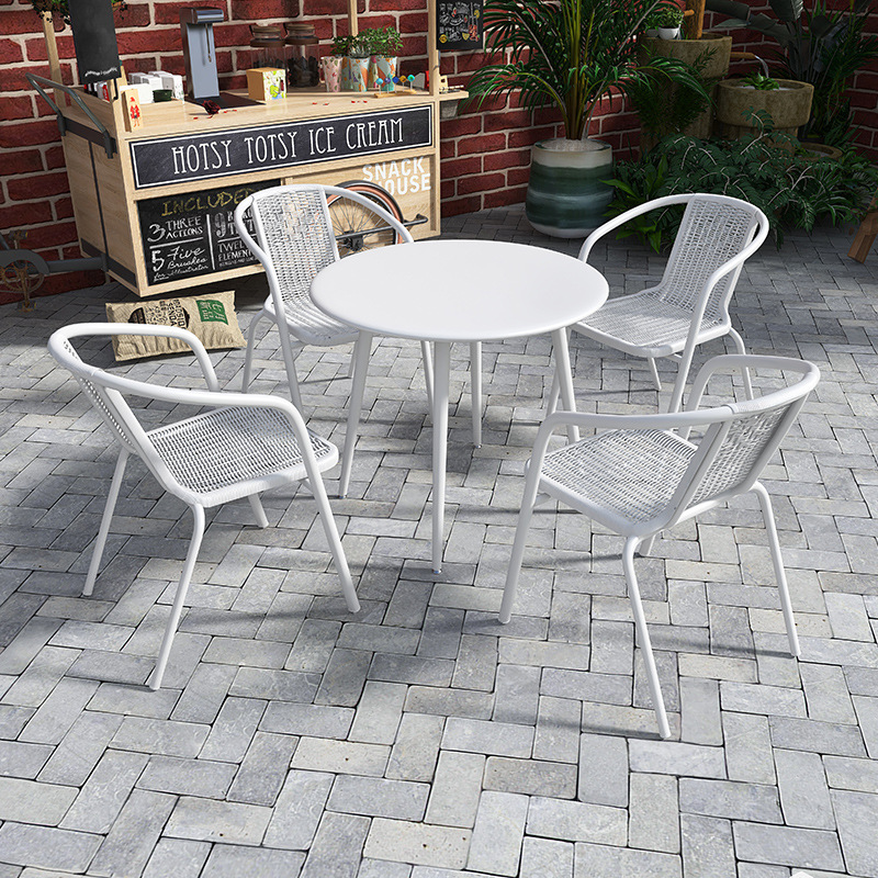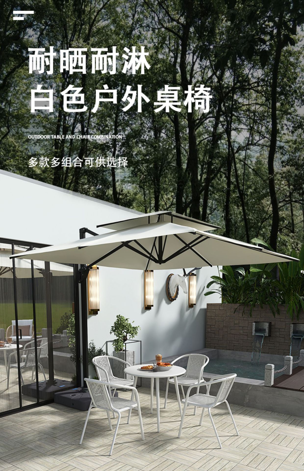 Sân sắt trắng bàn ghế ăn ngoài trời đặt ban công cửa hàng trung tâm mua sắm ngoài trời kem chống nắng quán cà phê ngoài trời