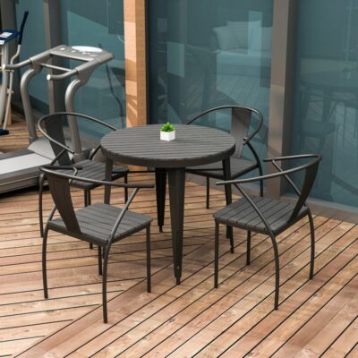 Sân thượng bộ bàn ghế gỗ nhựa ngoài trời màu trắng sân vườn ban công biệt thự thép chống nắng chống nước bàn tròn 80cm cá tính được thiết kế để tạo điểm nhấn cho khu vực sân vườn, ban công hoặc không gian ngoài trời.