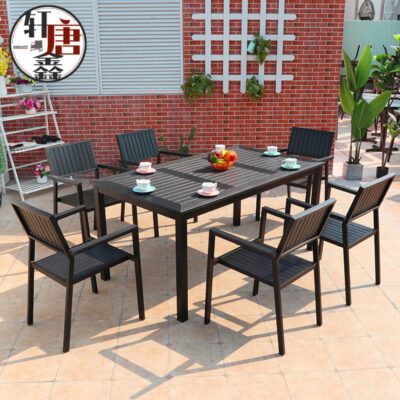 Sân vườn lộ thiên bàn ghế gỗ nhựa giải trí cafe ngoài trời chống nắng chống ẩm bàn ghế quán tráng miệng kết hợp bàn ghế ngoài trời