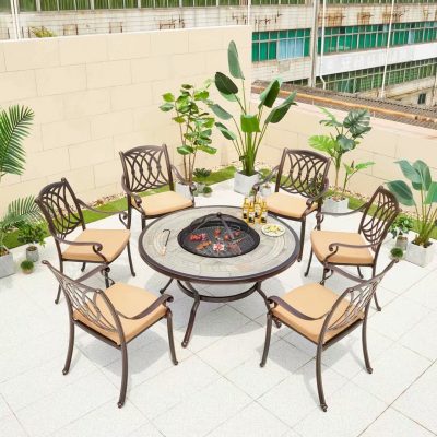 Sân vườn ngoài trời nhôm đúc bàn ghế nướng ngoài trời ban công biệt thự sân trong tất cả các đồ nội thất thư giãn bằng nhôm ngoài trời nhôm ba hoặc năm bộ được thiết kế để tạo điểm nhấn cho khu vực sân vườn, ban công hoặc không gian ngoài trời.