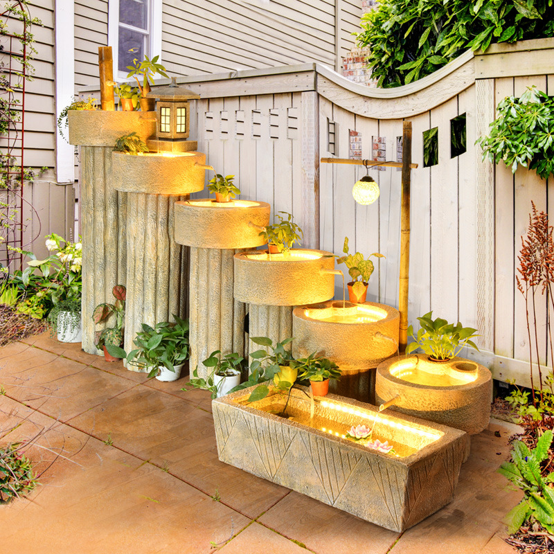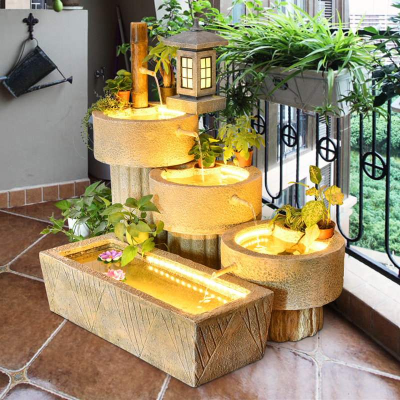 Sân vườn nước chảy đồ trang trí Phong cách Nhật Bản hệ thống máy nước đá cảnh quan sân nhỏ biệt thự bố trí cảnh quan trong nhà và ngoài trời