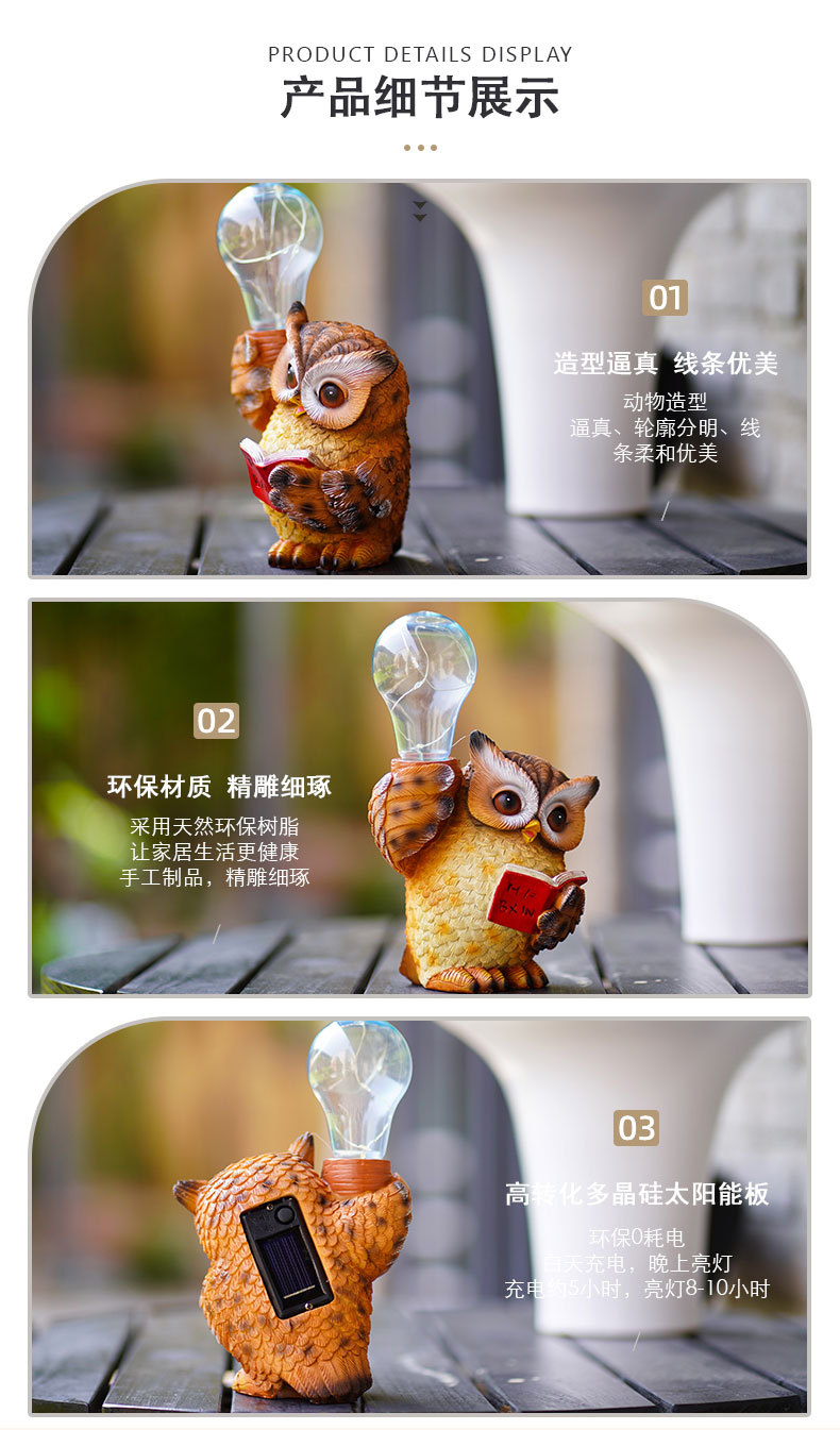 Sân vườn trang trí ban công sáng tạo đồ trang trí năng lượng mặt trời phòng trẻ em đèn ngủ đọc sách cú ngoài trời cảnh quan ánh sáng là lựa chọn lý tưởng cho không gian công cộng, sân vườn hoặc khu đô thị. Sản phẩm giúp nâng cao hình ảnh chuyên nghiệp và sạch đẹp cho môi trường sống.