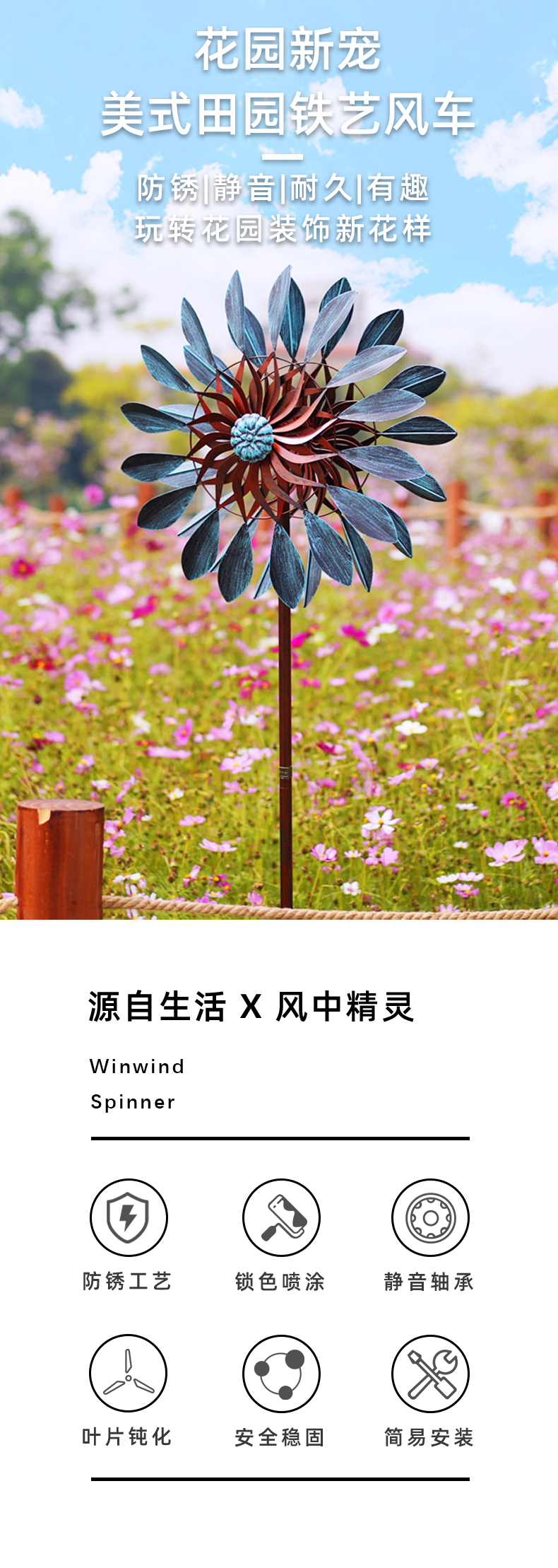 Sân vườn trang trí cỏ sân bố trí sân ngoài trời sắt rèn cối xay gió xoay phụ kiện nhà sàn đồ trang trí cảnh quan