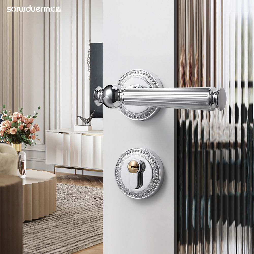 Sáng Bạc Khóa cửa Trong Nhà Phòng Ngủ Tay Nắm Cửa Phong Cách Hút Nam Châm Khóa cửa không ồn Chia gia đình Khóa cửa Gỗ. Khóa cửa nhập khẩu theo yêu cầu.