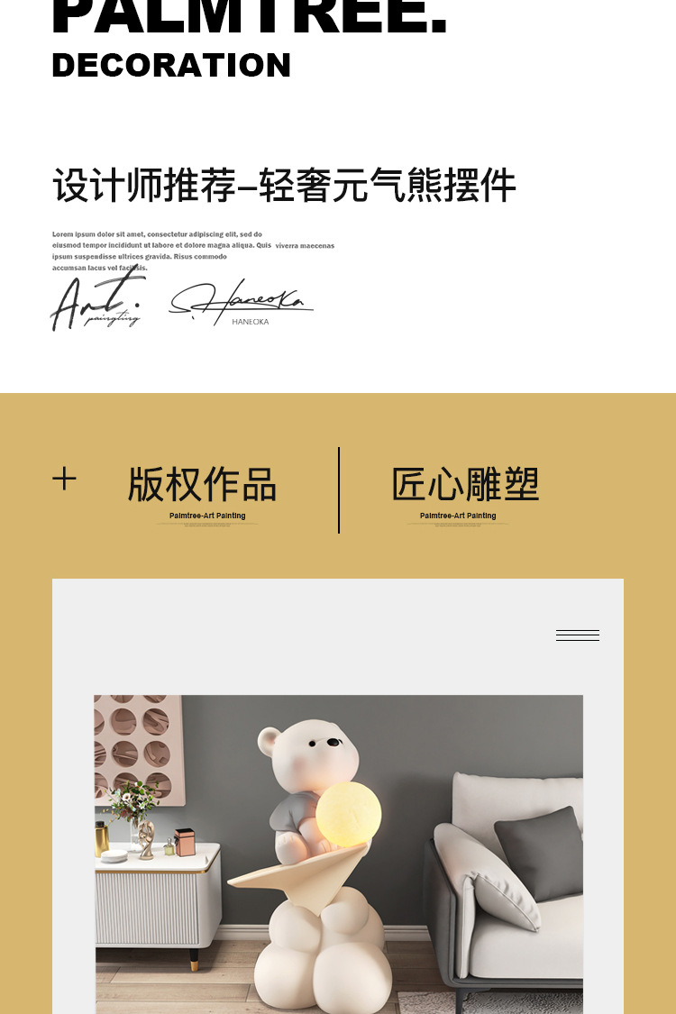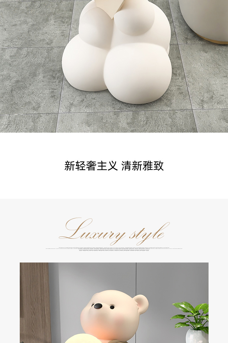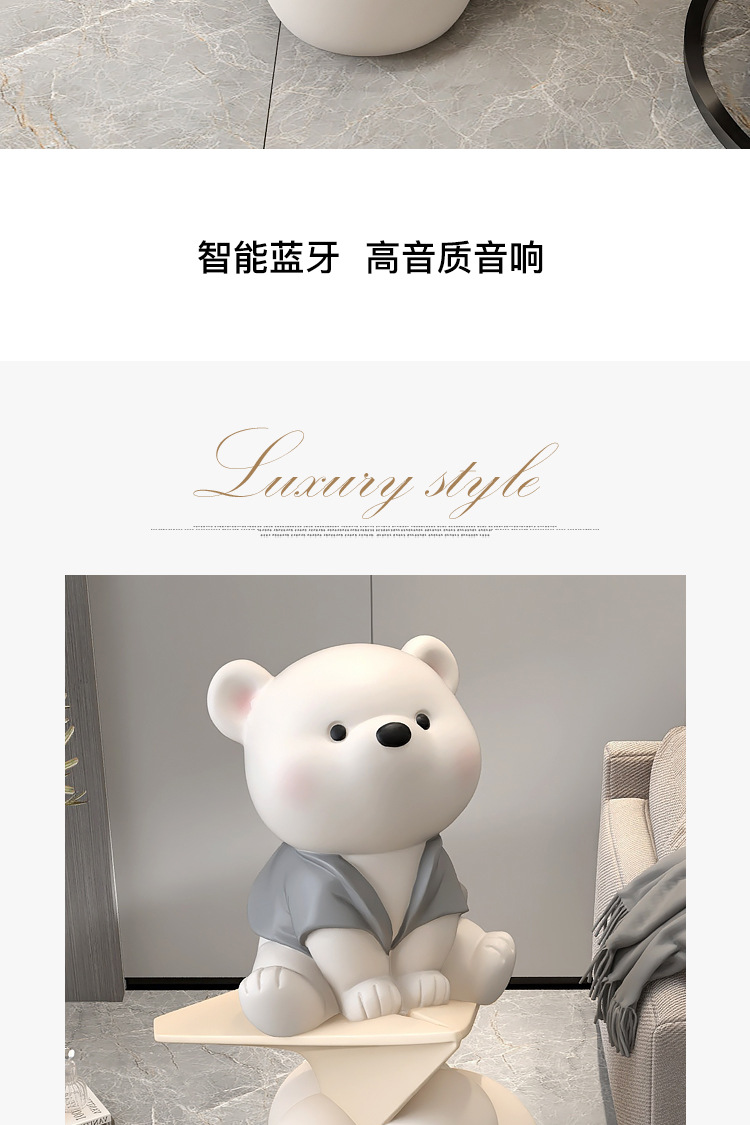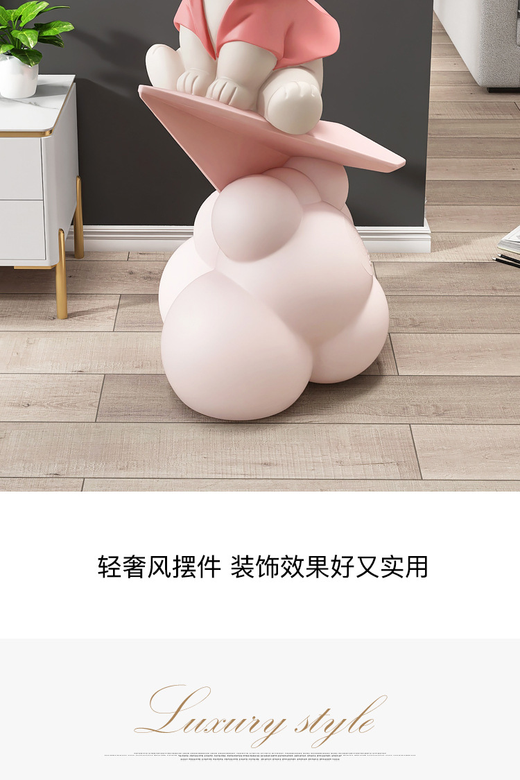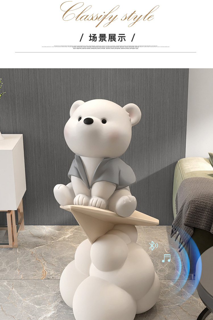 Sáng tạo gấu di chuyển món quà tân gia lớn trang trí từ trần đến sàn phòng khách tủ tivi sofa bên cạnh đèn trang trí nhà sang trọng