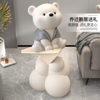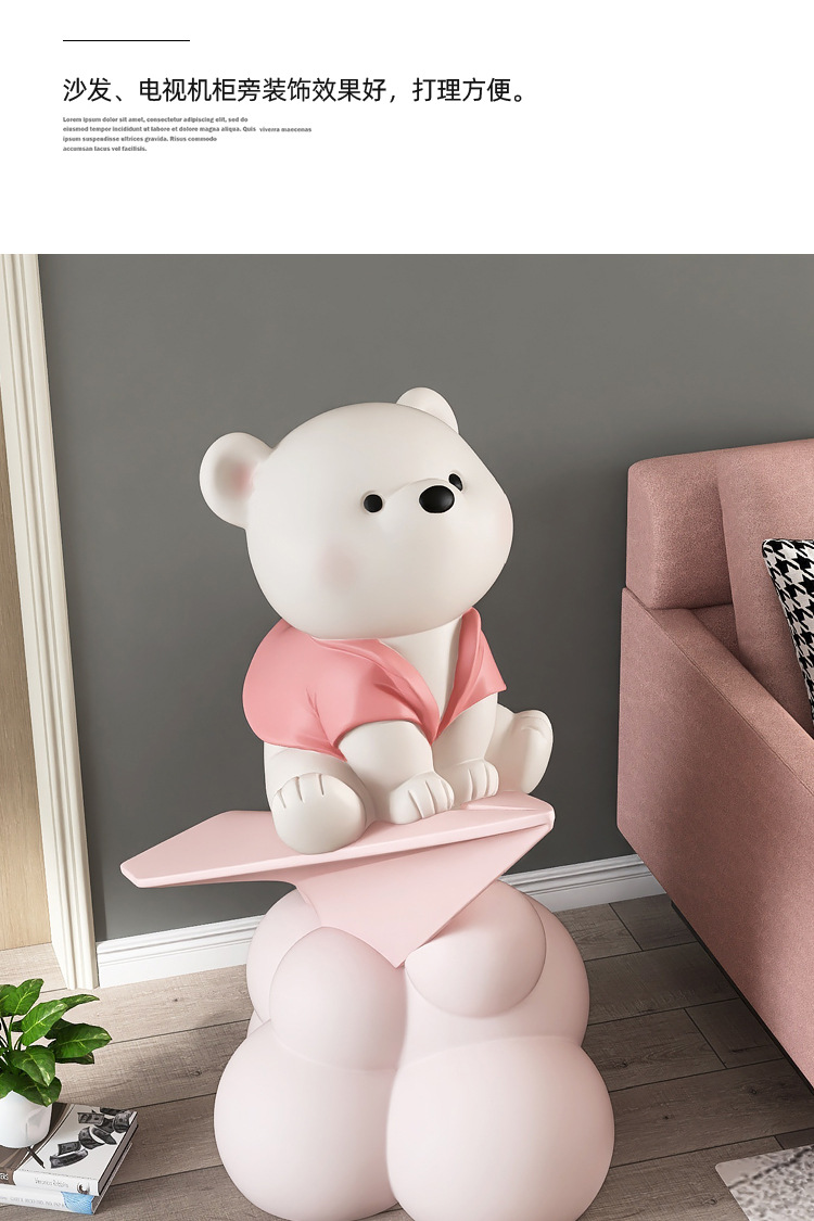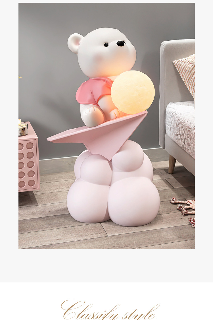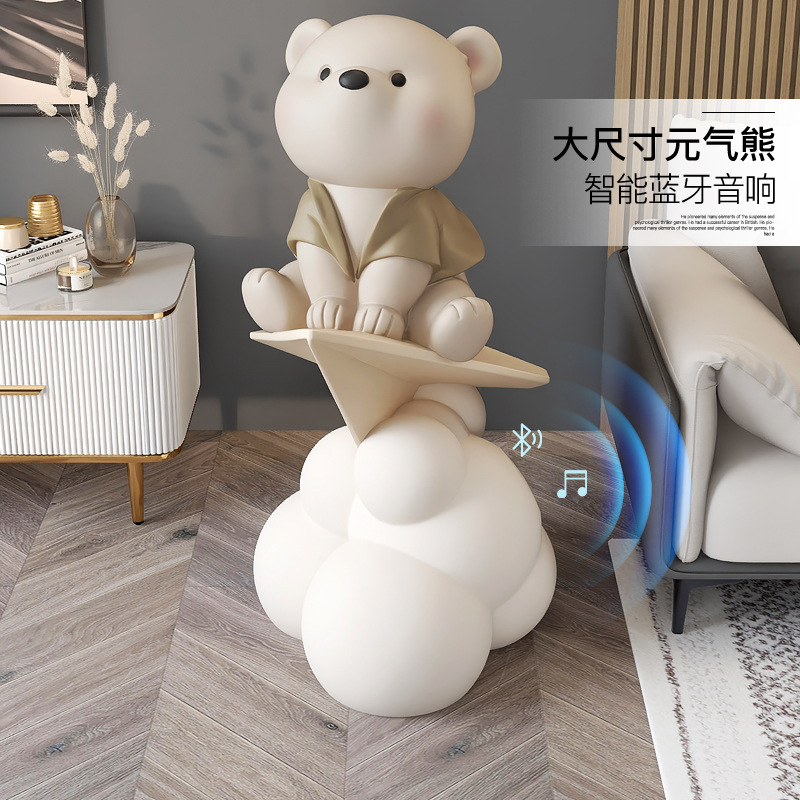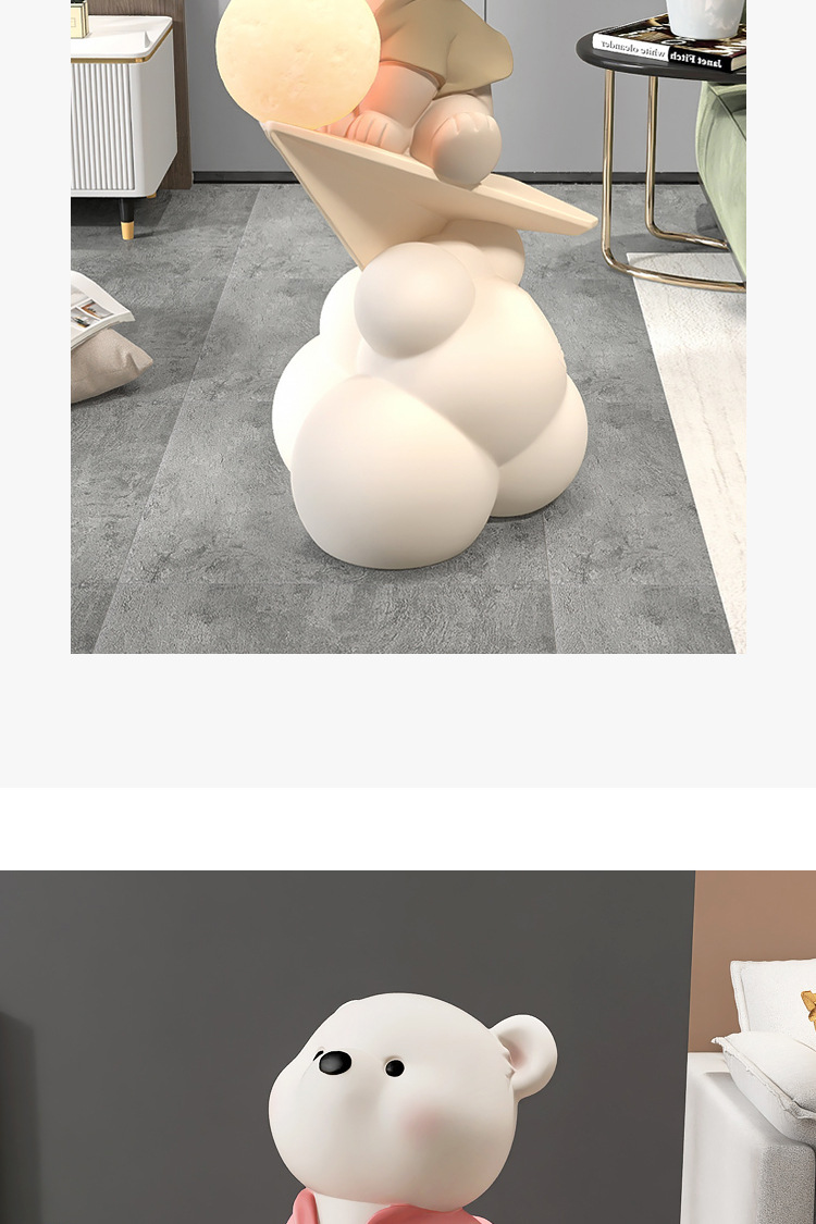 Sáng tạo gấu di chuyển món quà tân gia lớn trang trí từ trần đến sàn phòng khách tủ tivi sofa bên cạnh đèn trang trí nhà sang trọng