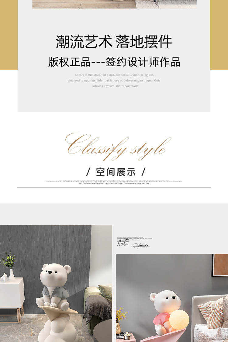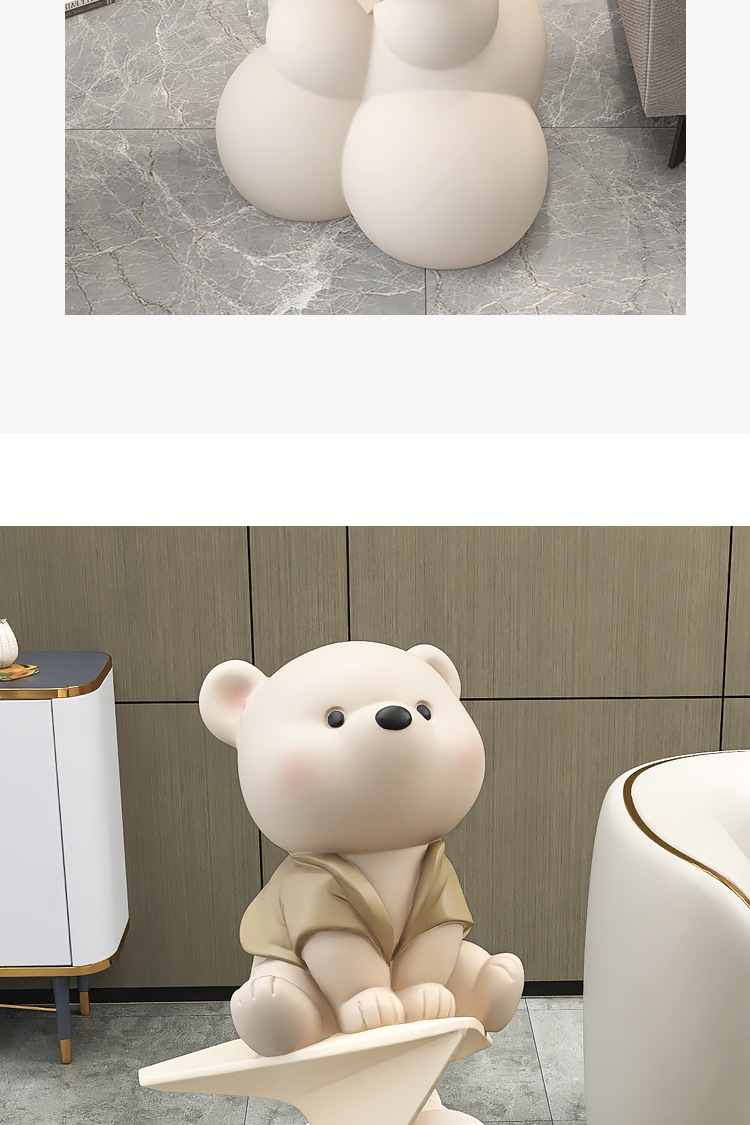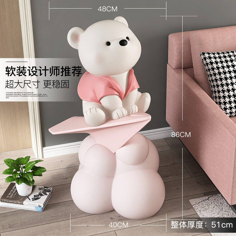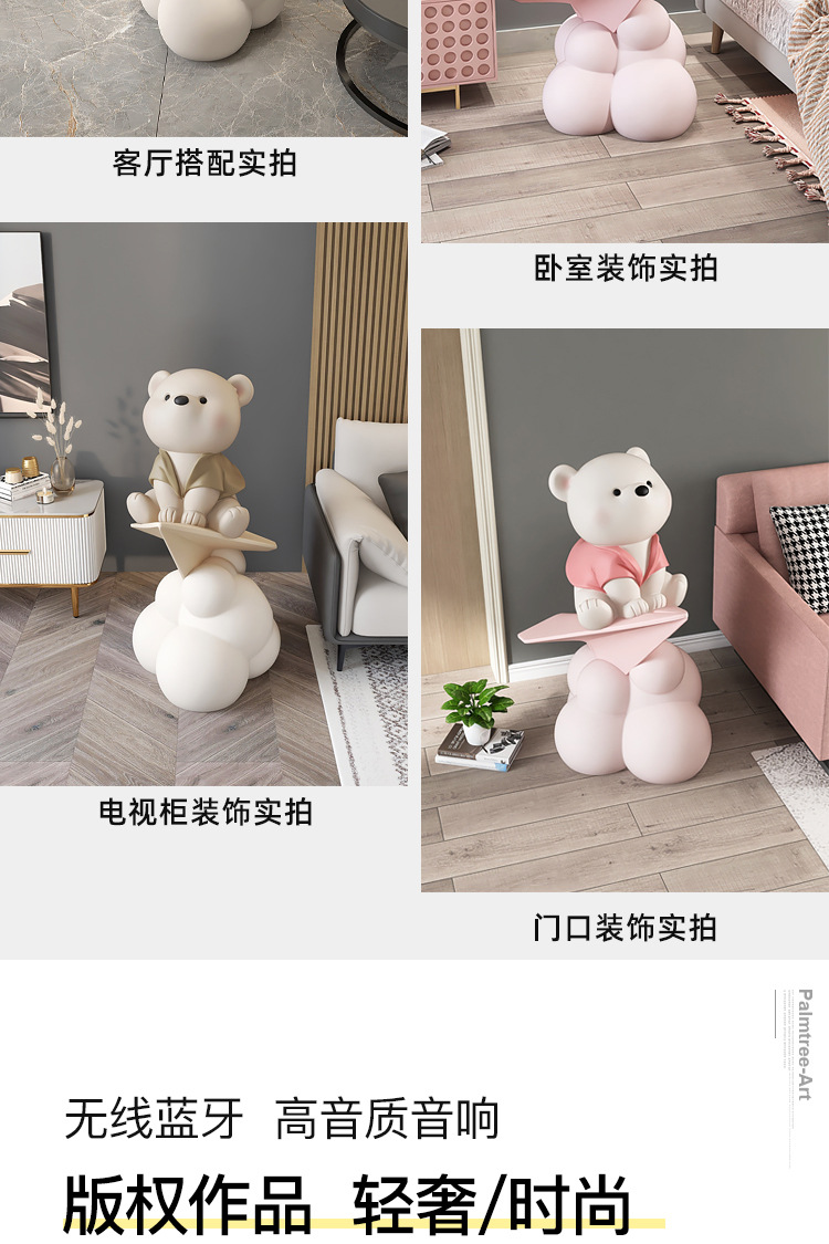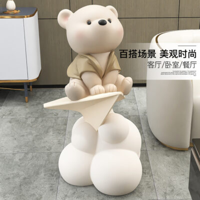 Sáng tạo gấu di chuyển món quà tân gia lớn trang trí từ trần đến sàn phòng khách tủ tivi sofa bên cạnh đèn trang trí nhà sang trọng