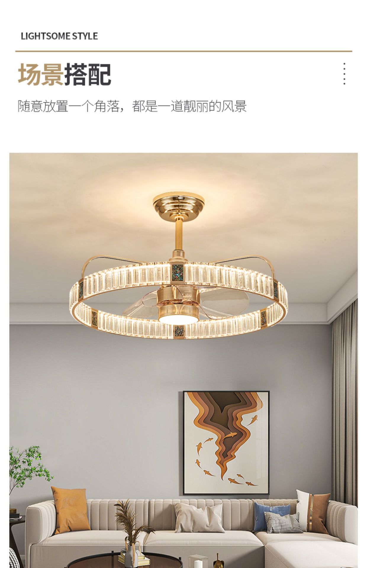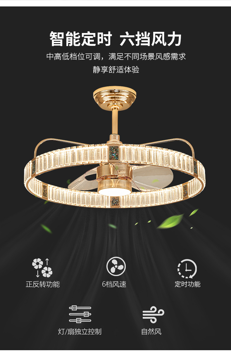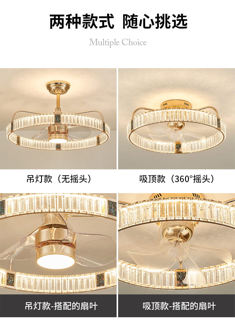 Sáng Tạo Kính Pha Lê Quạt Đèn Ánh Sáng Phòng Khách Sang Trọng Phòng Ăn Phòng Ngủ Nghiên Cứu Phòng Trẻ Em Đơn Giản Quạt Trần Đèn Chùm